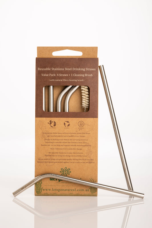 4-Pack Stainless Steel Straws with Natural Fibre Cleaning Brush